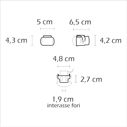 ingombro lunghezza mm. 65 h mm. 48 a staffa