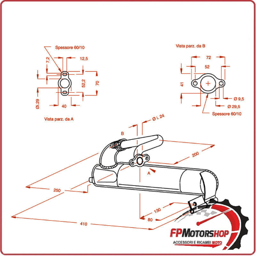 MARMITTA SILENZIATORE TERMINALE DI SCARICO SITO PER PIAGGIO VESPA ET3 125 50/90