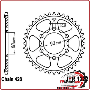 CORONA PER TRASMISSIONE MOTO JT 1222 Z47 JTR1222.47 47 DENTI ACCIAIO PASSO 428