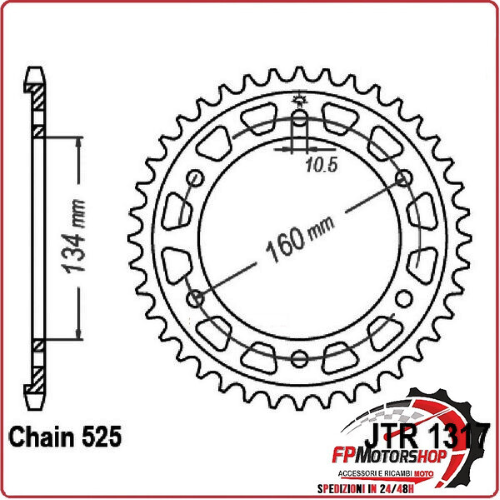 CORONA PER TRASMISSIONE MOTO JT 1317 Z43 JTR1317.43 43 DENTI ACCIAIO PASSO 525