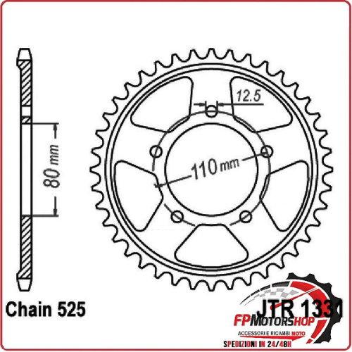 CORONA PER TRASMISSIONE MOTO JT 1331 Z42 ZBK ZINCATA NERA JTR1331.42ZBK 42 DENTI
