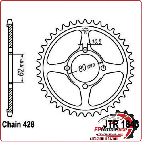 CORONA PER TRASMISSIONE MOTO JT 1843 Z54 JTR1843.54 54 DENTI ACCIAIO PASSO 428