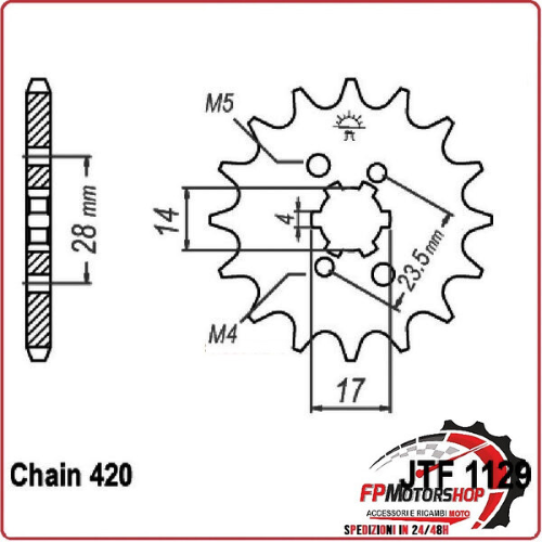 PIGNONE TRASMISSIONE PER MOTO JT 1129 Z14 JTF1129.14 14 DENTI ACCIAIO PASSO 420