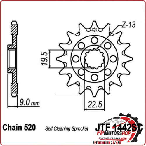 PIGNONE TRASMISSIONE PER MOTO JT 1442 Z13 SC JTF1442.13SC 13 DENTI ACCIAIO SELF