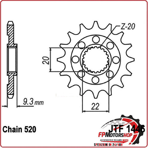 PIGNONE TRASMISSIONE PER MOTO JT 1446 Z14 SC JTF1446.14SC 14 DENTI ACCIAIO SELF