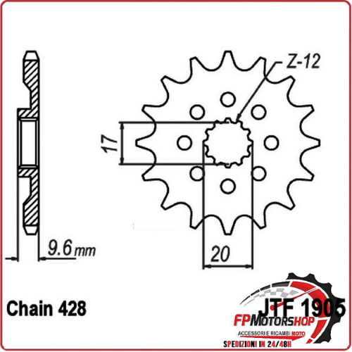 PIGNONE TRASMISSIONE PER MOTO JT 1905 Z14 JTF1905.14 14 DENTI ACCIAIO PASSO 428