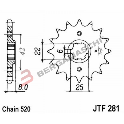 PIGNONE TRASMISSIONE PER MOTO JT 281 Z15 JTF281.15 15 DENTI ACCIAIO