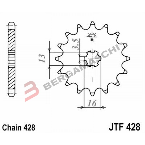 PIGNONE TRASMISSIONE PER MOTO JT 428 Z12 JTF428.12 12 DENTI ACCIAIO PASSO