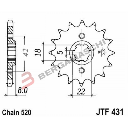 PIGNONE TRASMISSIONE PER MOTO JT 431 Z14 JTF431.14 14 DENTI ACCIAIO PASSO 520