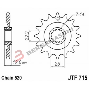 PIGNONE TRASMISSIONE PER MOTO JT 715 Z12 JTF715.12 12 DENTI ACCIAIO PASSO 520