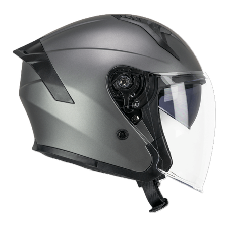 Casco jet dalle linee aggressive con spoiler posteriore. Dotato di visiera interna parasole a scomparsa e visiera esterna basculante dal campo visivo molto amplio. Gli interni termoformati estraibili e lavabili, il sistema di aerazione interna, anello antifurto al cinturino e fibbia micrometrica ne completano la dotazione.