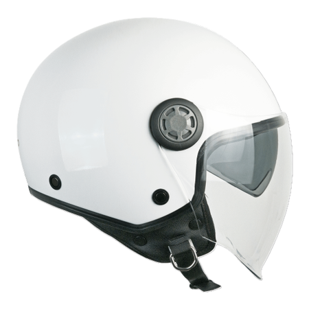 Demi jet con omologazione ECE-R 22.06 caratterizzato da visiera interna fumè a scomparsa e visiera esterna formato extra lungo. È inoltre fornito, all'interno della scatola, un frontino parasole utilizzabile in alternativa alla visiera esterna. È dotato di interni e guanciali totalmente estraibili e lavabili, fibbia micrometrica e anello antifurto al cinturino.