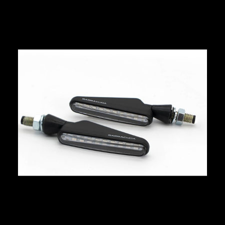 Sono offerte in colorazione NERO, con lente chiara e LED a lampeggio arancione.
