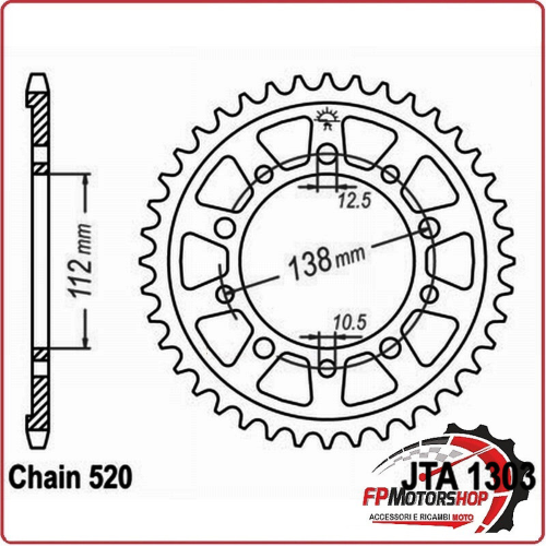 CORONA TRASMISSIONE PER MOTO ALLUMINIO JTA1303 Z47 JTA1303.47 47 DENTI PASSO 520