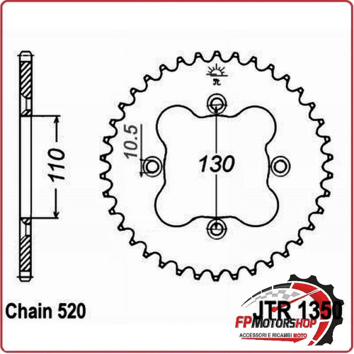 CORONA TRASMISSIONE PER MOTO JT 1350 Z38 ZBK NERO JTR1350.38ZBK 38 DENTI 520