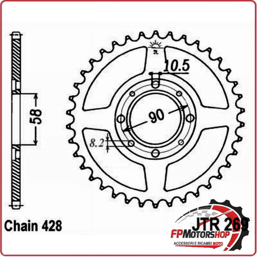 CORONA TRASMISSIONE PER MOTO JT 269 Z45 ZBK NERO JTR269.45ZBK 45 DENTI PASSO 428